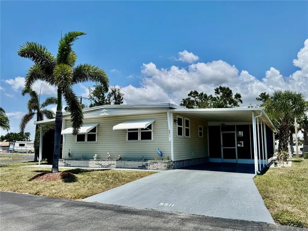 2 BED, 2 BATH MOBILE HOME IN 55+ COMMUNITY. This home comes with TWO covered carports and TWO lanai's. Water Heater (2023). All new plumbing and drains (2023). New carpet in front lanai. New electric box (2024). This furnished home is ready for you to start enjoying the luxury of Florida living! Own your land! Chateau Village is a land-owned community with low HOA fees of just $210/month which includes water, trash, cable and internet. The park offers a community pool, shuffleboard courts and a clubhouse with numerous activities. Pet friendly! Close to shopping, restaurants, and beaches.